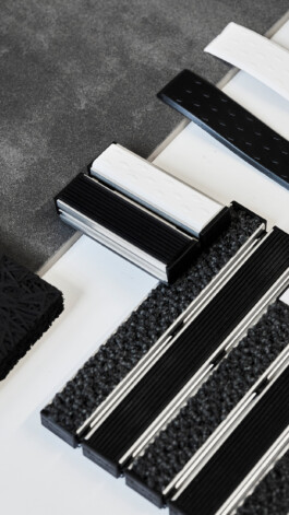 Warmes Eichenholz für die Möblierung und Systemtrennwände in Kombination mit zurückhaltenden Grautönen für die Böden bilden die Basis für das Farb- und Materialkonzept. Punktuell gesetzte Schmuckfarben aus der Volksbank Markenwelt sowie Edelstahl für das zentrale SB-Möbel komplettieren es.