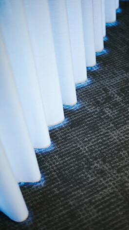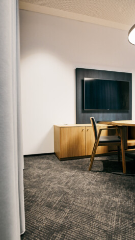 Klar gesetzte, dimmbar angesteuerte LED-Beleuchtung und Akustikmaßnahmen in allen relevanten Bereichen sorgen für eine angenehme Raumatmosphäre.