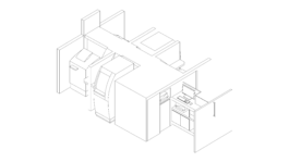 Diese Bankstelle der Volksbank Oberösterreich entwickelt sich um den zentralen Kern der Direktbank - Einer SB-Zone mit multifunktionalem Möbel, in dem alle Indoor SB-Geräte sowie der temporär geöffnete Kassenplatz untergebracht sind. Kundensafes und voll ausgestattete Beratungsräume komplettieren das Angebot für die KundInnen.
