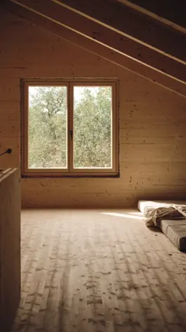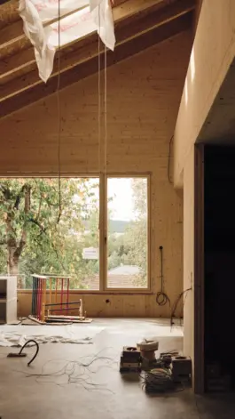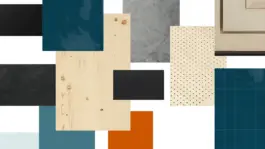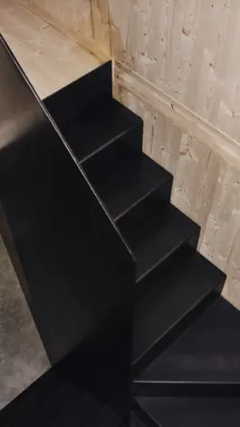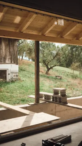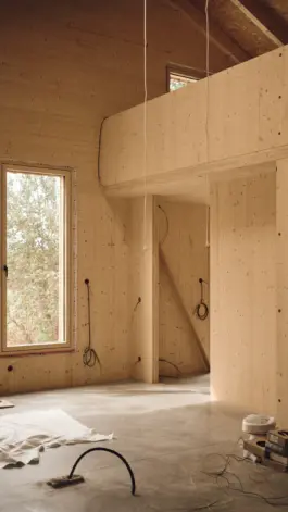 Fichtenholz, Ziegel, CLT Fichte, Schwarzstahl, Beton, Fliesen